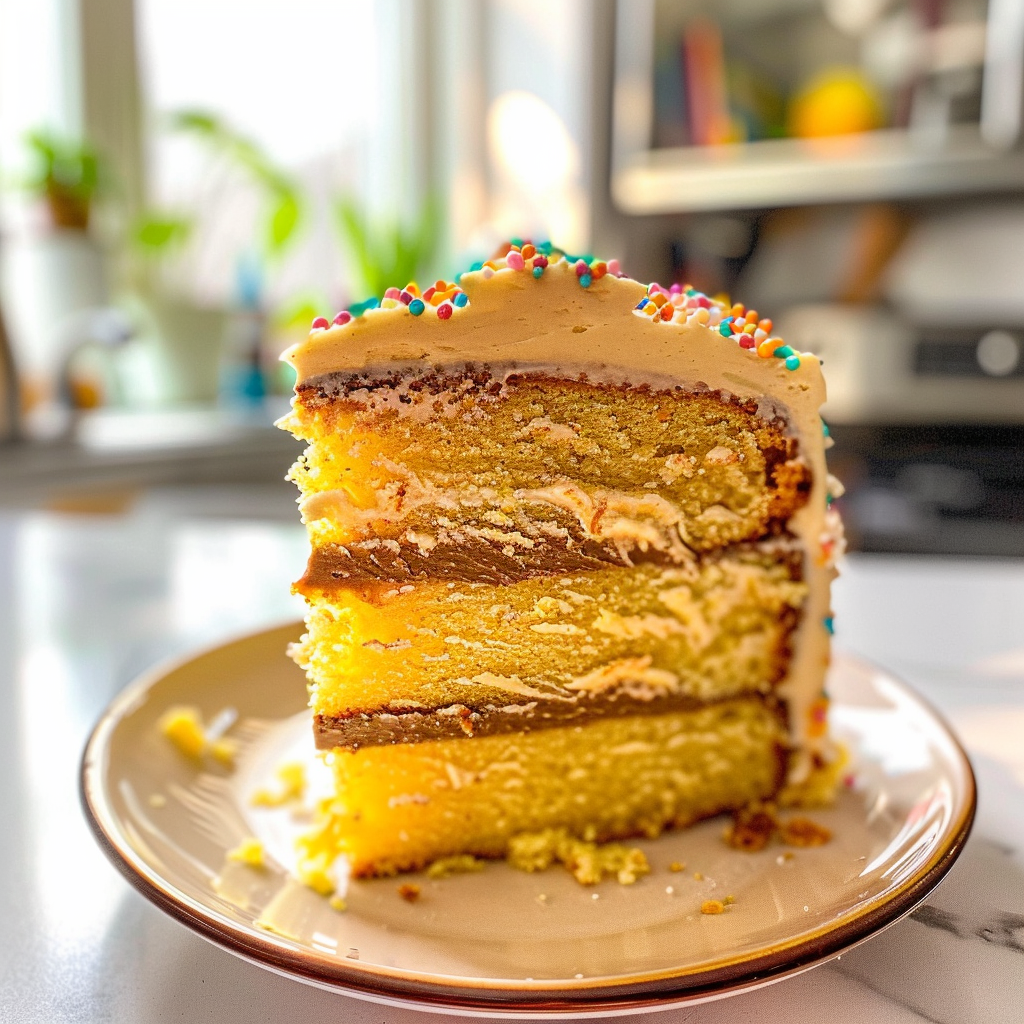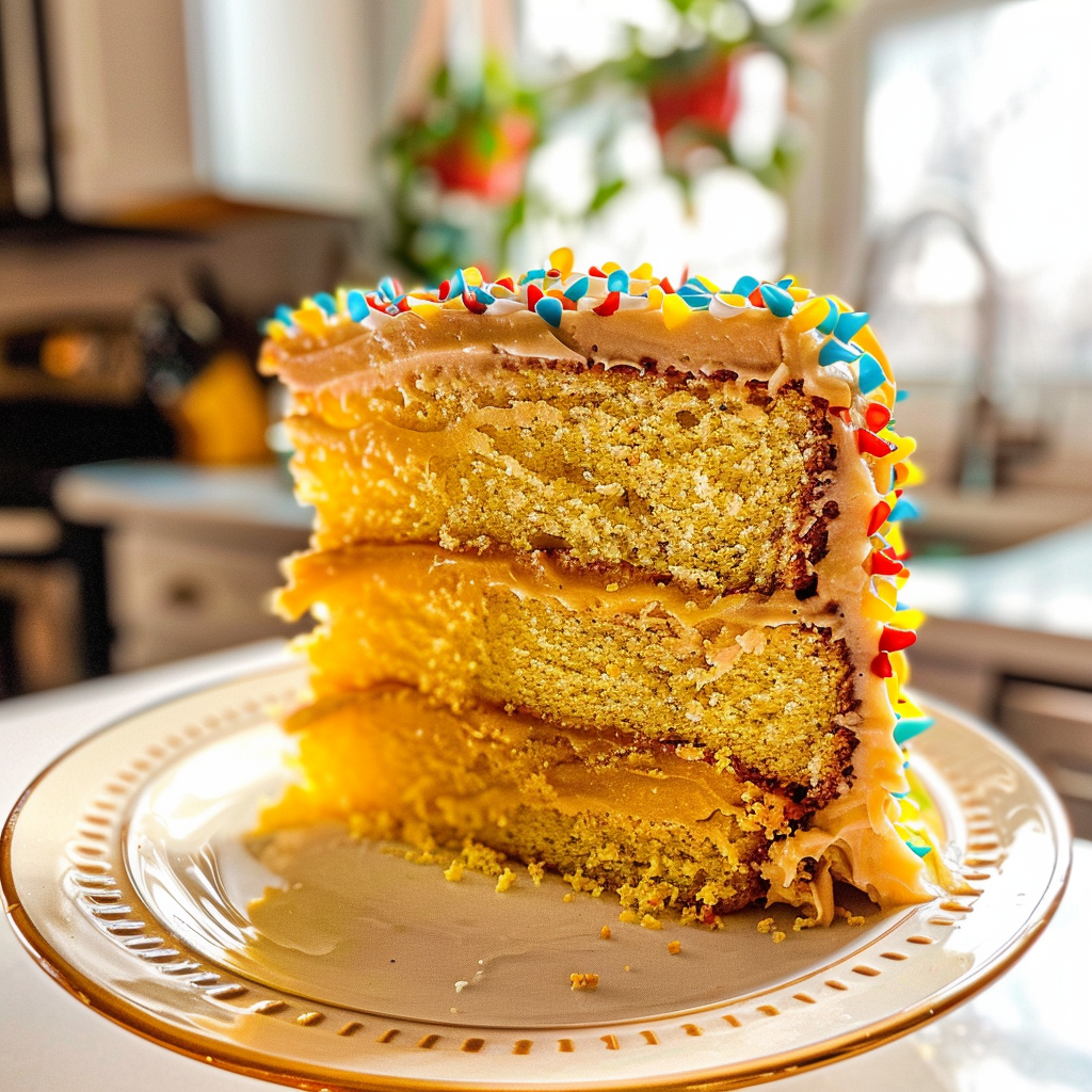 Now you’ve got yourself a stunning Decadent Yellow Layer Cake! Don’t forget those all-important sprinkles or decorative touches to make it sing!